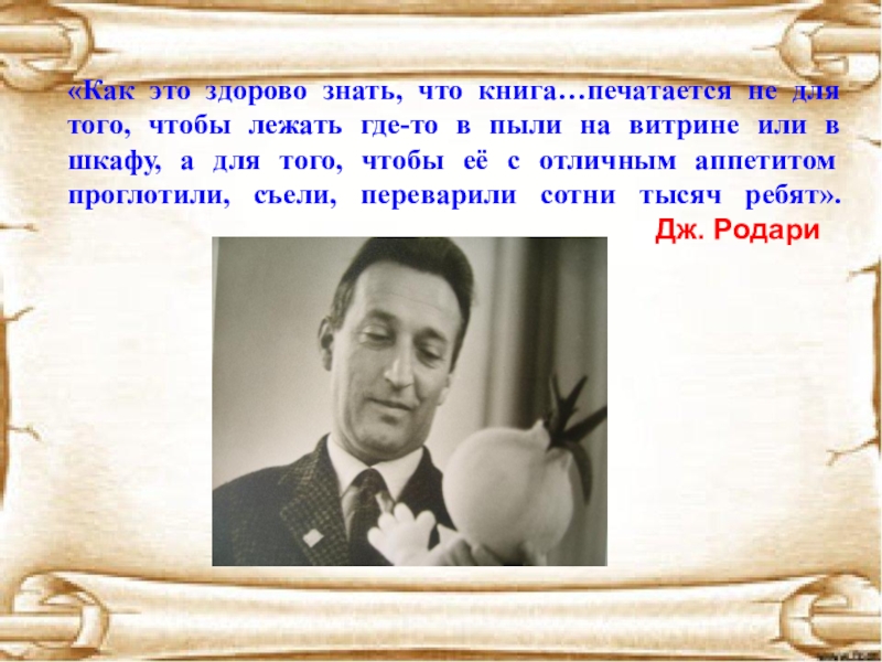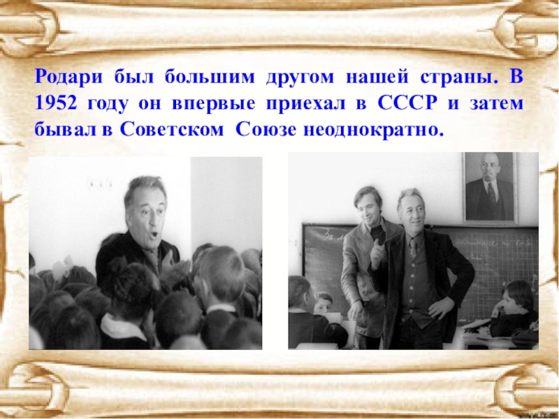 Слайд 17Родари был большим другом нашей страны. В 1952 году он