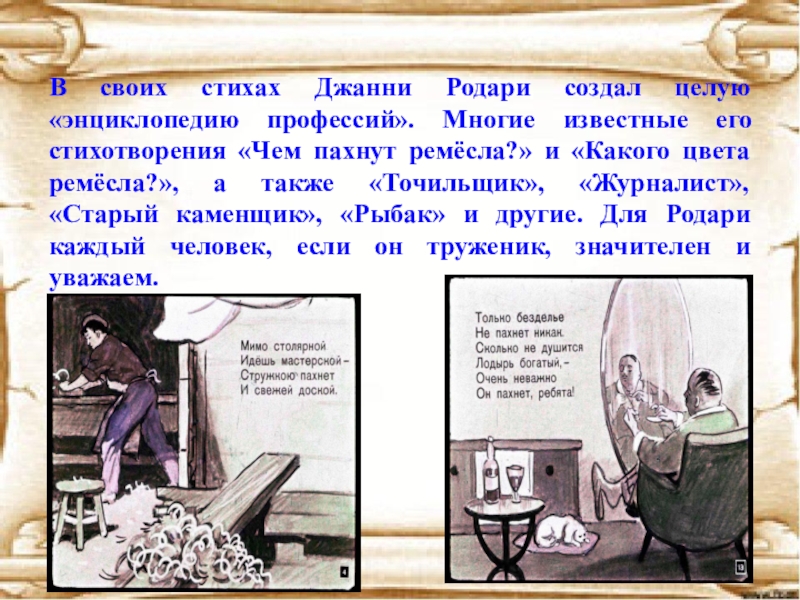 Слайд 10В своих стихах Джанни Родари создал целую «энциклопедию профессий». Многие