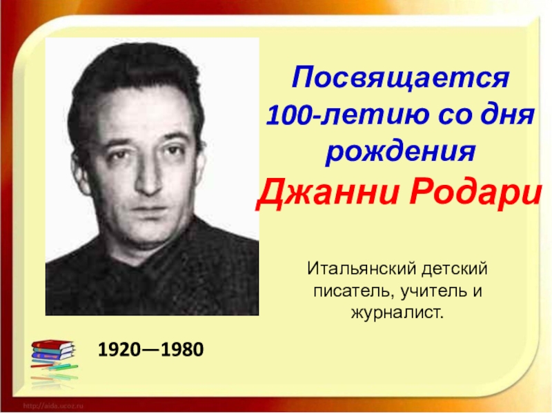 Слайд 3Джанни Родари— известный итальянский детский писатель. Родари родился 23 октября