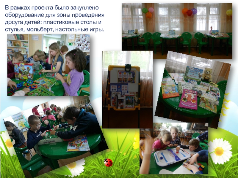 Слайд 8В рамках проекта было закуплено оборудование для зоны проведения досуга