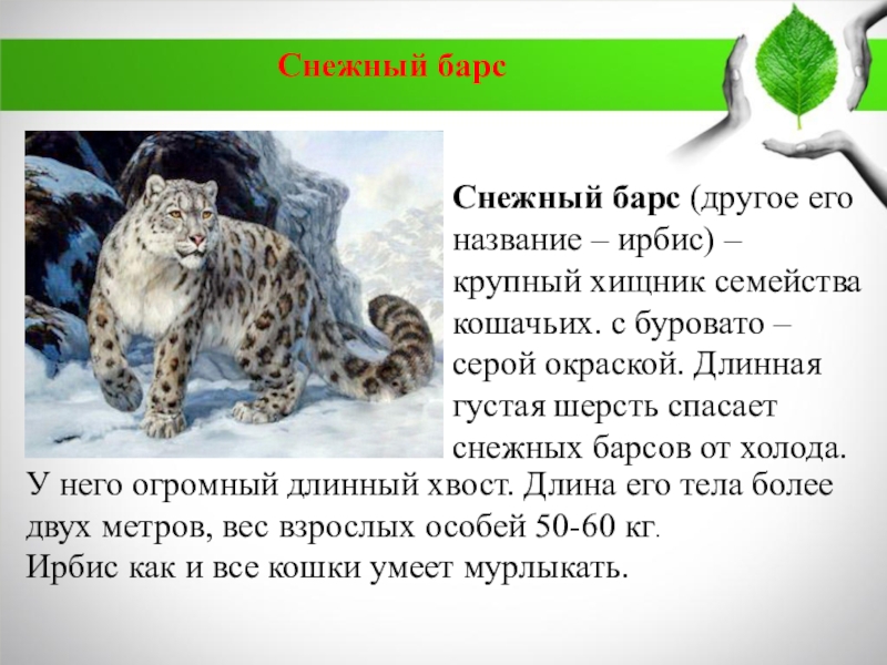 Ирбис как и все кошки умеет мурлыкать.