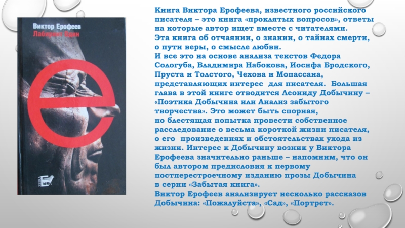 Слайд 23Книга Виктора Ерофеева, известного российского писателя – это книга «проклятых