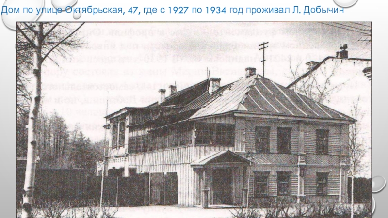 Слайд 13Дом по улице Октябрьская, 47, где с 1927 по 1934