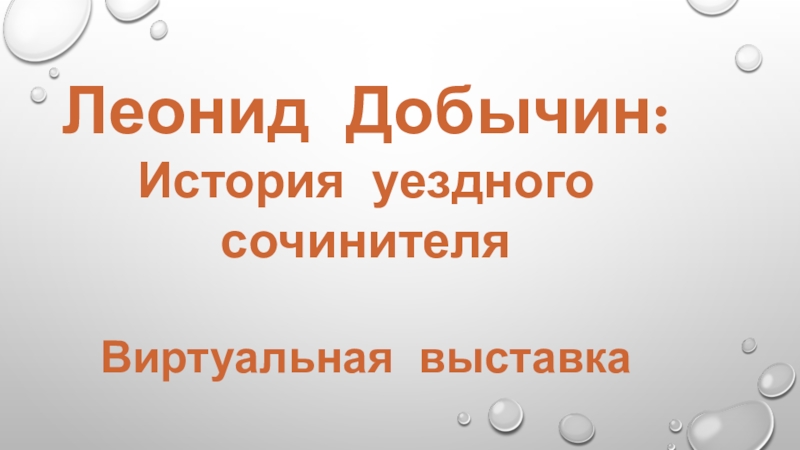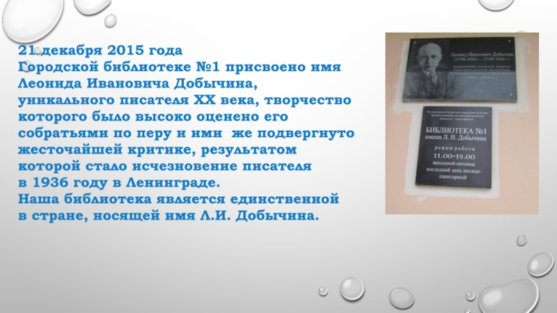 составляющих стало не только сохранение памяти о Леониде Добычине, но
