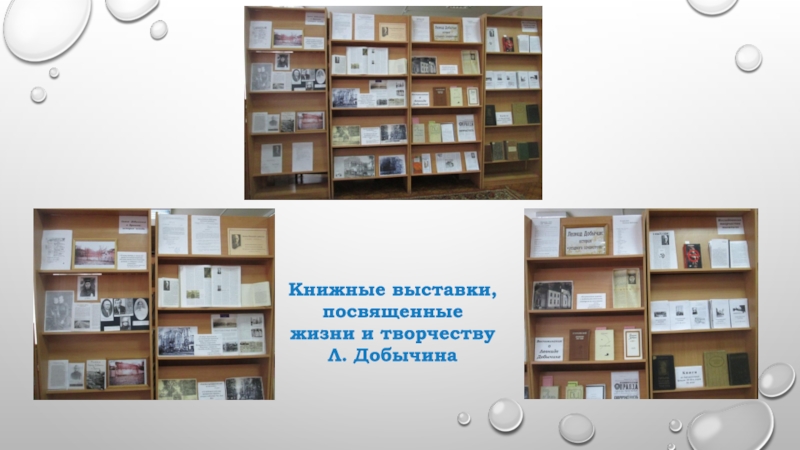и изучение его творчества. Большое место в этой работе отводится литературному краеведению, установлению родственных связей писателя с Брянщиной, отображению Брянска 20–30-х годов на страницах его произведений. Брянск, который долгое время не знал писателя Леонида Добычина, пробуждается от собственного невежества. В настоящее время в Брянске есть краеведы, литературоведы, преподаватели ВУЗов, учителя школ, художники, работники музеев, которым небезынтересно его творчество. Одним из составляющих этой работы мы считаем объединение усилий всех неравнодушных людей, установлению важных для краеведческой и литературоведческой работы связей. Эта работа помогает нам понять истоки и прообразы его брянских рассказов, культурно-исторический контекст и топонимическую картину современного писателю Брянска. Развернутая в библиотеке выставка-экспозиция