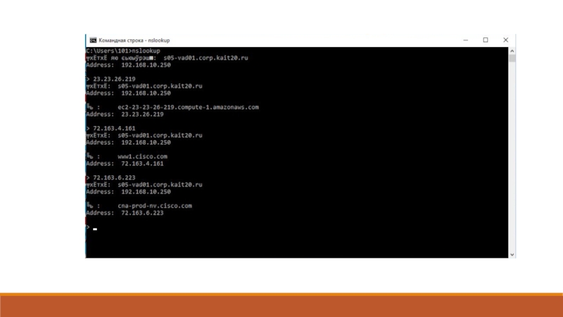 Рассмотрим пример выполнения команды nslookup,