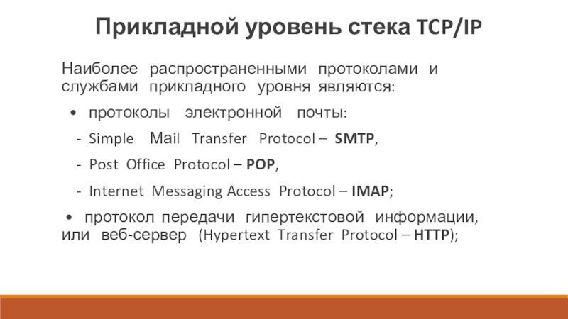 Слайд 11Прикладной уровень стека TCP/IP