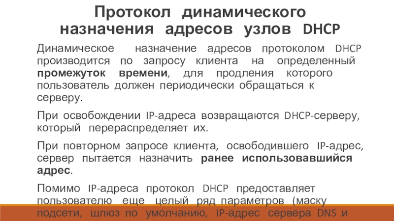 Слайд 50Протокол динамического назначения адресов узлов