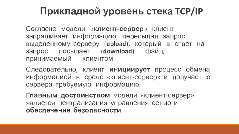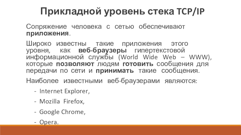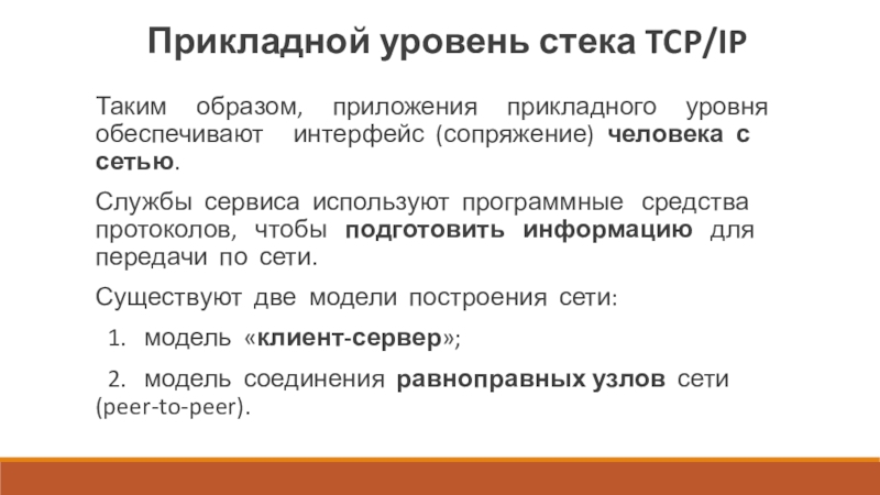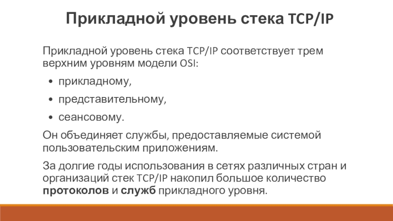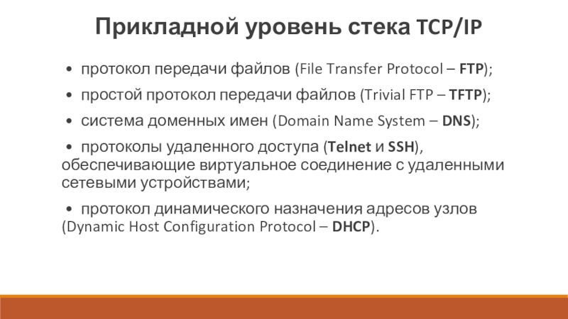 Слайд 13Прикладной уровень стека TCP/IP