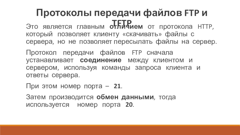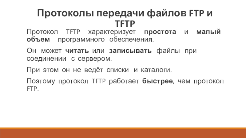 Поэтому протокол TFTP работает быстрее, чем протокол FTP.