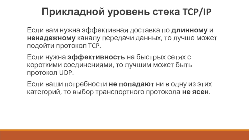 Если ваши потребности не попадают ни в одну из этих категорий, то выбор транспортного протокола не ясен.