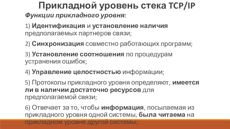 Функции прикладного уровня обычно включают идентификацию партнеров