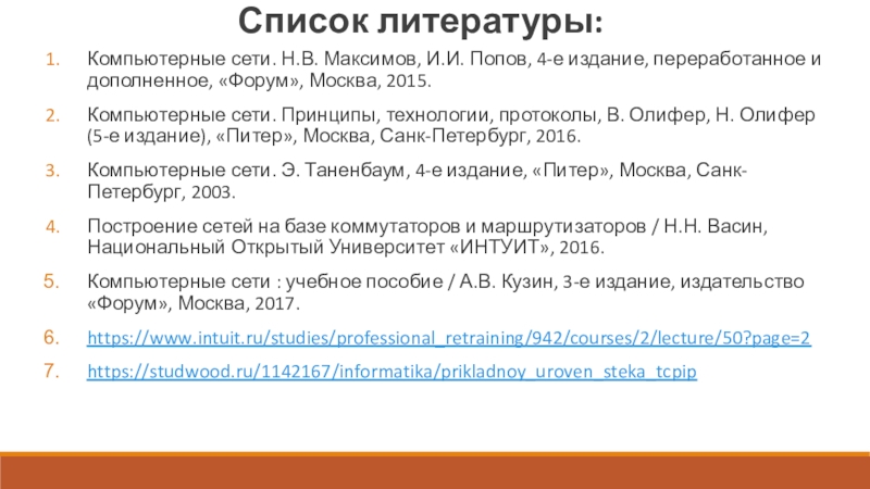 Олифер, Н. Олифер (5-е издание), «Питер», Москва, Санк-Петербург, 2016.