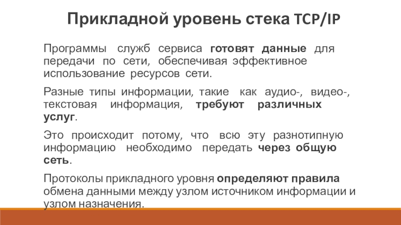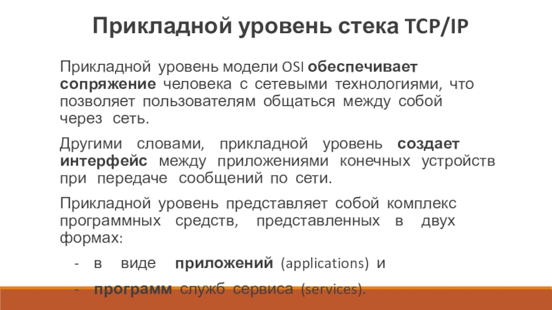 Слайд 10Прикладной уровень стека TCP/IP