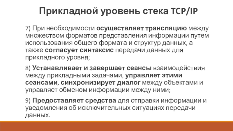 а также согласует синтаксис передачи данных для прикладного уровня;