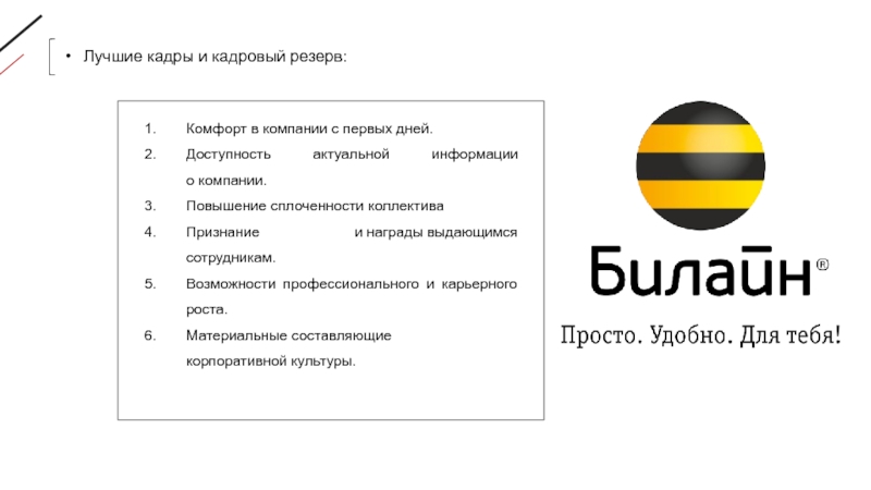 Слайд 26«Билайн» привлекает лучшие кадры с рынка, а также формирует внутренний