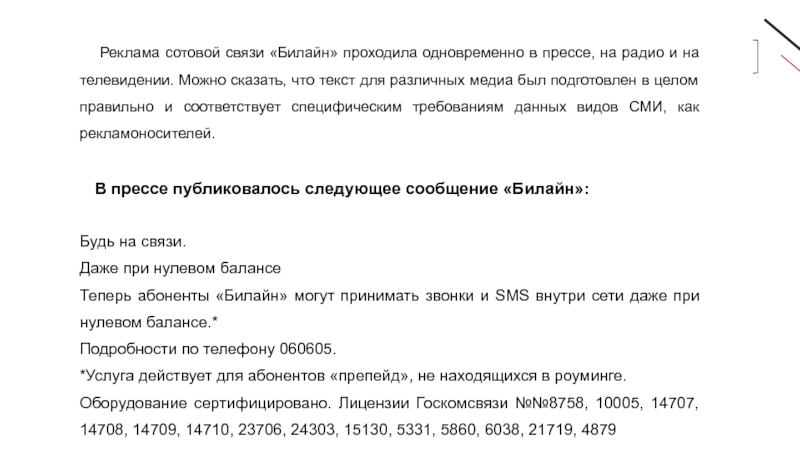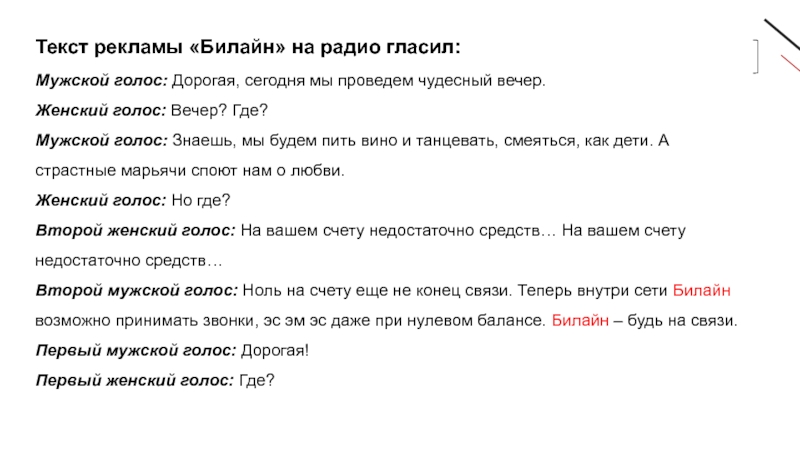 Слайд 16Текст рекламы «Билайн» на радио гласил: