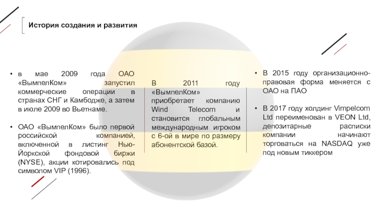 В 2017 году холдинг Vimpelcom Ltd переименован в VEON Ltd, депозитарные расписки компании начинают торговаться на NASDAQ уже под новым тиккером