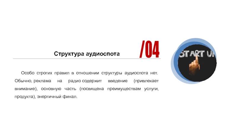 Слайд 11Структура аудиоспота