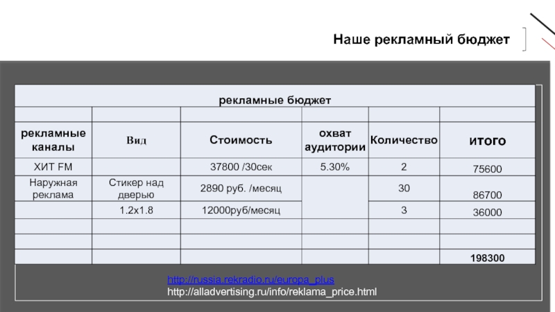 Слайд 38Наше рекламный бюджет