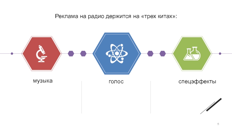 Слайд 5Реклама на радио держится на «трех китах»: