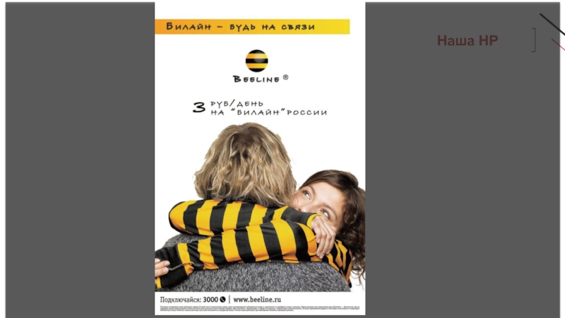 Слайд 15  Реклама сотовой связи «Билайн» проходила одновременно в прессе,