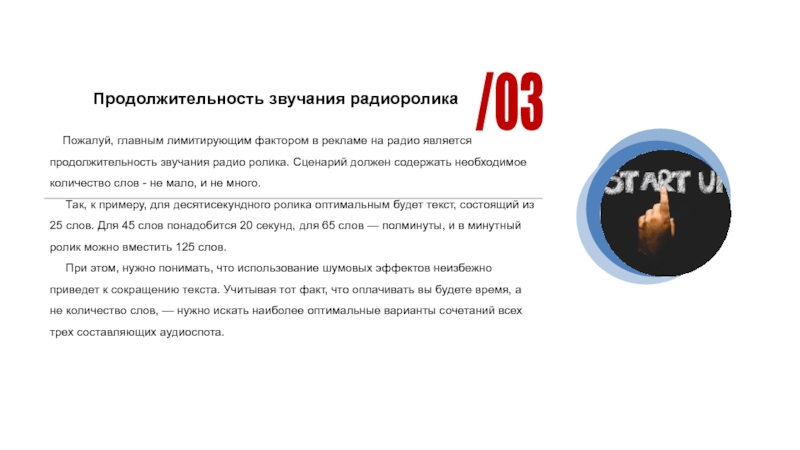 Слайд 10Продолжительность звучания радиоролика