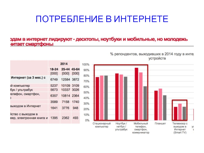 Слайд 3ПОТРЕБЛЕНИЕ В ИНТЕРНЕТЕ