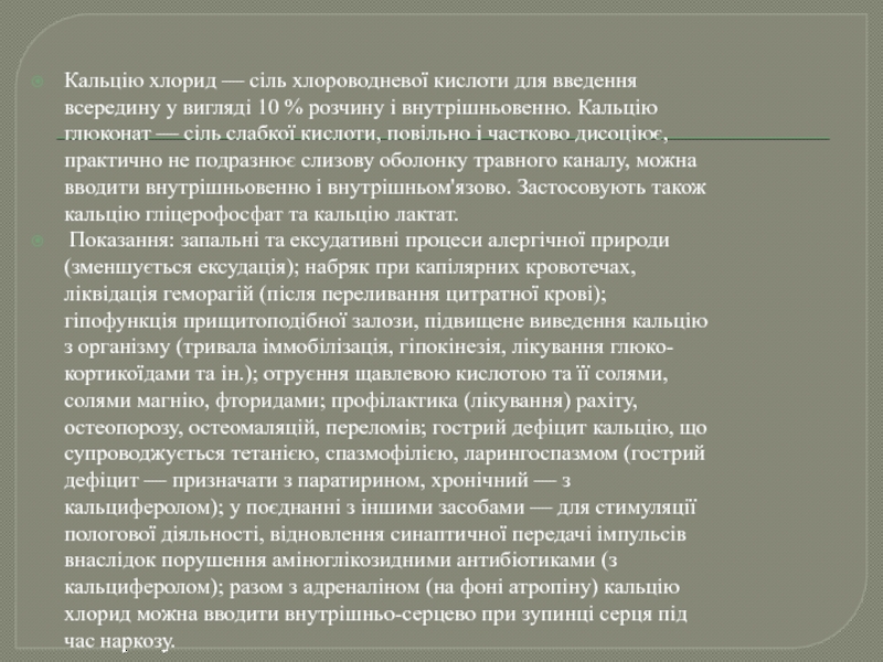 хлорид (СаС12 • • 6Н20) і кальцію глюконат.