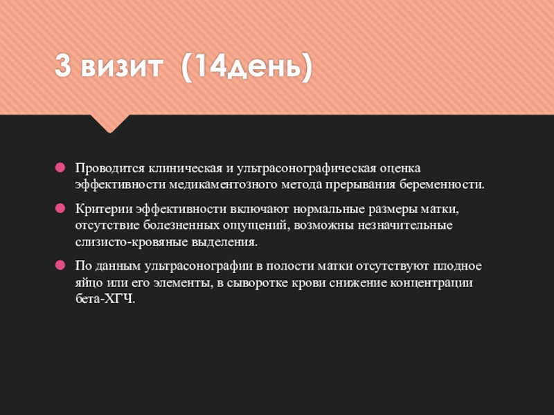 Динамическое наблюдение за состоянием пациентки в процессе медикаментозного прерывания беременности включает три контрольных визита.