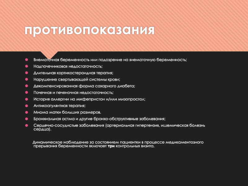 Слайд 3Основные медицинские показания к проведению фармаборта