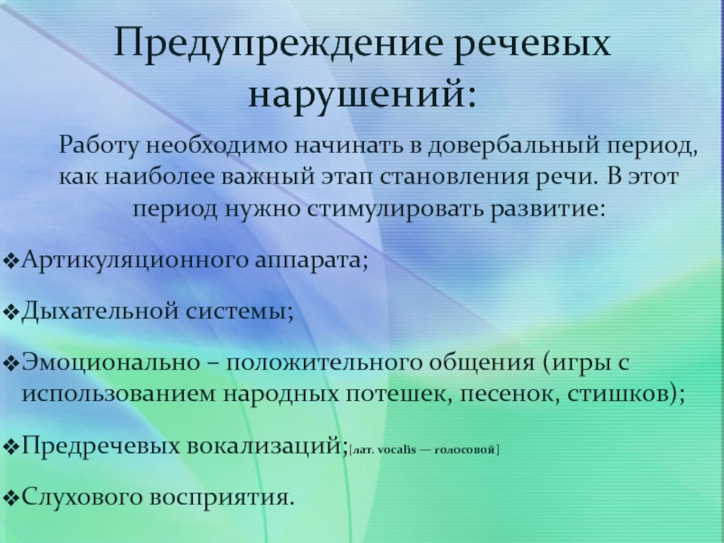 Предупреждение речевых нарушений: