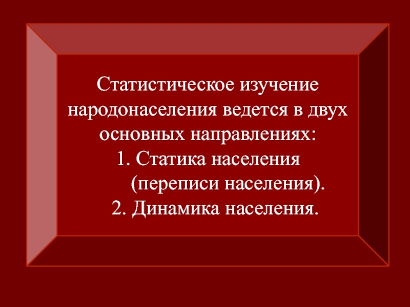 Слайд 4Статистическое изучение народонаселения ведется в двух основных направлениях: