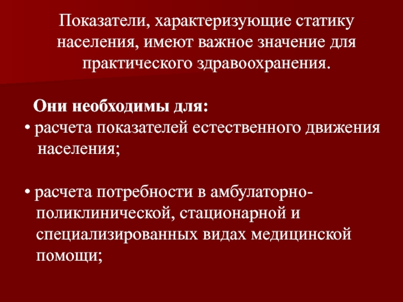 Слайд 37Показатели, характеризующие статику населения, имеют важное значение для практического здравоохранения.