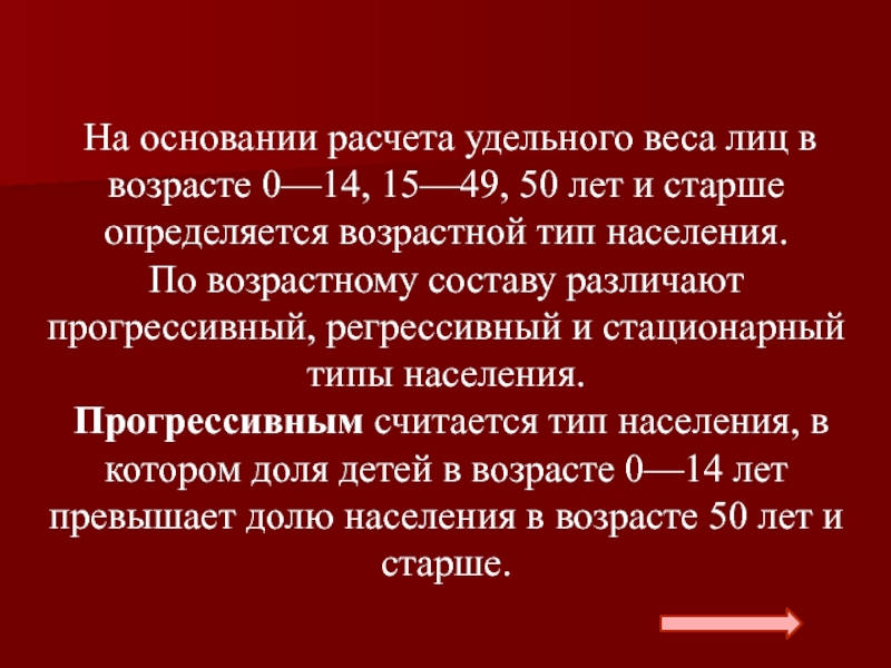 возрасте 0—14, 15—49, 50 лет и старше определяется возрастной тип