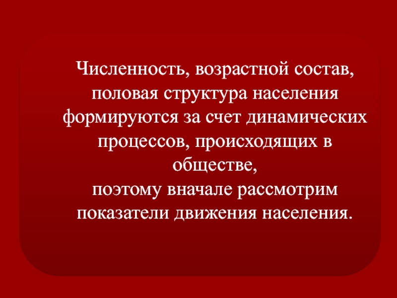 Слайд 11Численность, возрастной состав, половая структура населения формируются за счет динамических