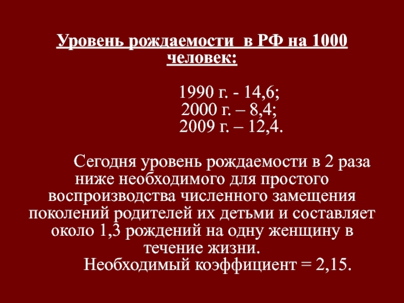 Слайд 20Уровень рождаемости в РФ на 1000 человек: