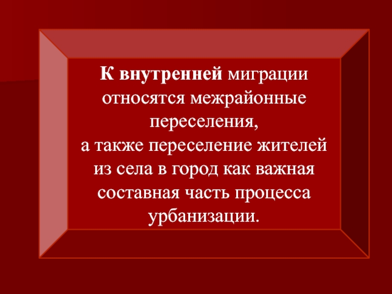 Слайд 15К внутренней миграции относятся межрайонные переселения,