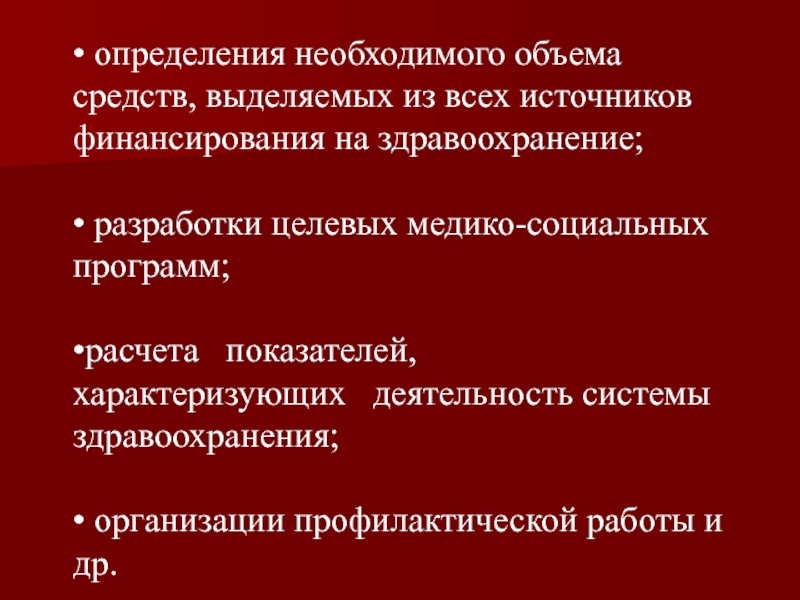 Слайд 38• определения необходимого объема средств, выделяемых из всех источников финансирования