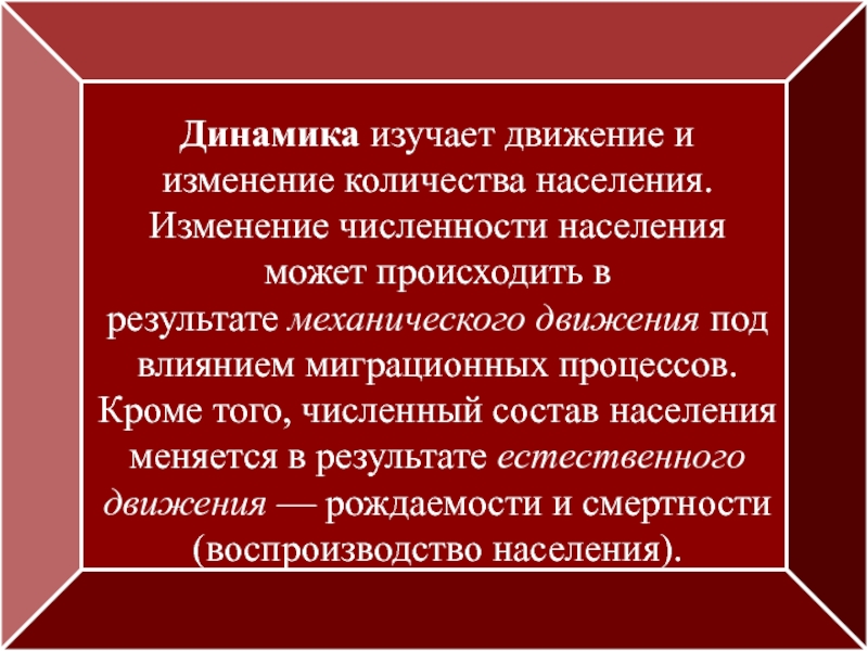 Слайд 8Динамика изучает движение и изменение количества населения.