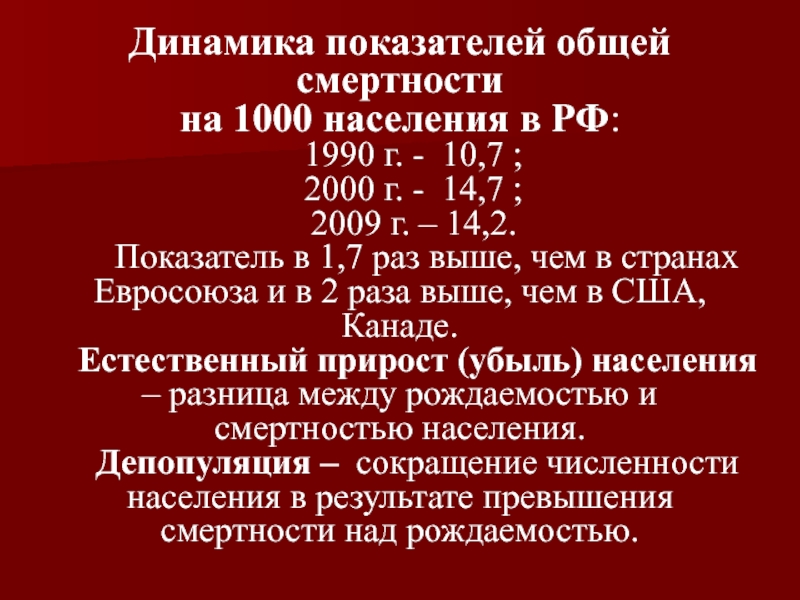 Депопуляция – сокращение численности населения в результате превышения смертности над рождаемостью.