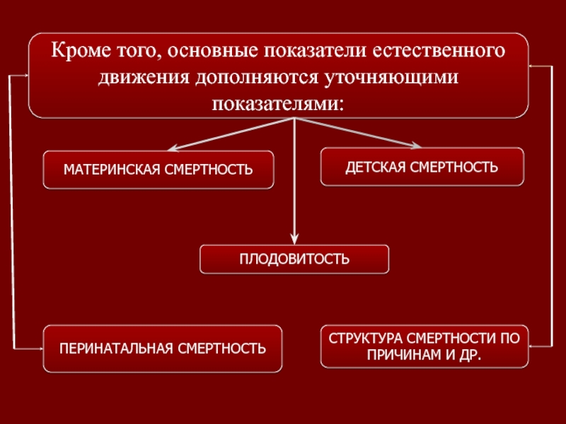 Слайд 10Кроме того, основные показатели естественного движения дополняются уточняющими показателями: