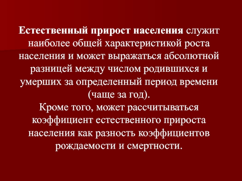Слайд 29Естественный прирост населения служит наиболее общей характеристикой роста населения и