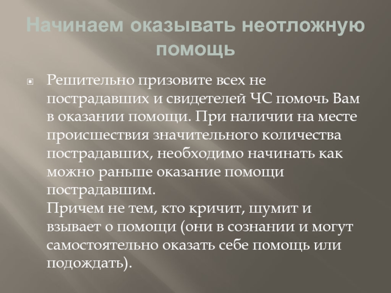 происшествия значительного количества пострадавших, необходимо начинать как можно раньше оказание помощи пострадавшим.
