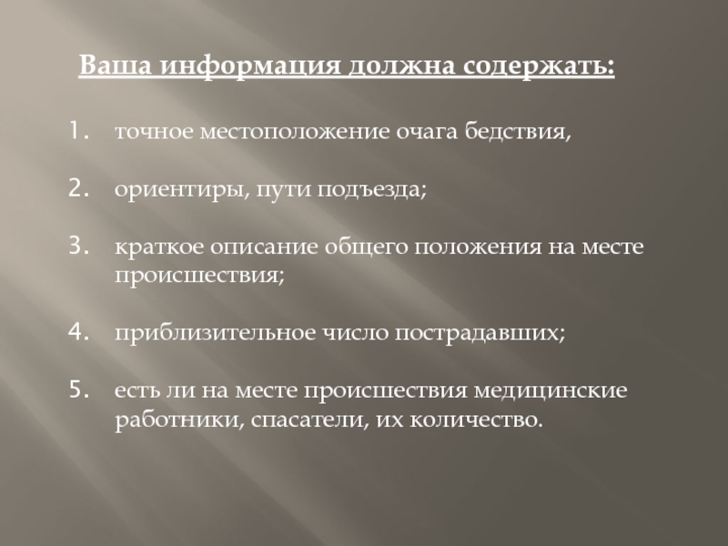 2. Постарайтесь не уезжать с места происшествия, какое бы тяжелое зрелище оно не представляло.