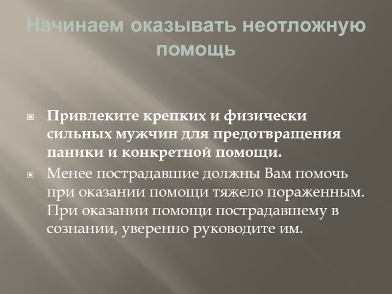 оказании помощи тяжело пораженным. При оказании помощи пострадавшему в сознании, уверенно руководите им.