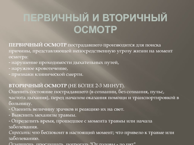 Слайд 8ПЕРВИЧНЫЙ И ВТОРИЧНЫЙ ОСМОТР