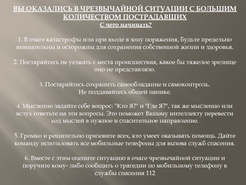 Слайд 5ВЫ ОКАЗАЛИСЬ В ЧРЕЗВЫЧАЙНОЙ СИТУАЦИИ С БОЛЬШИМ КОЛИЧЕСТВОМ ПОСТРАДАВШИХ