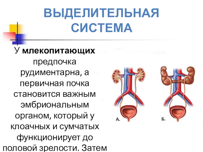 У млекопитающих предпочка рудиментарна, а первичная почка становится важным
