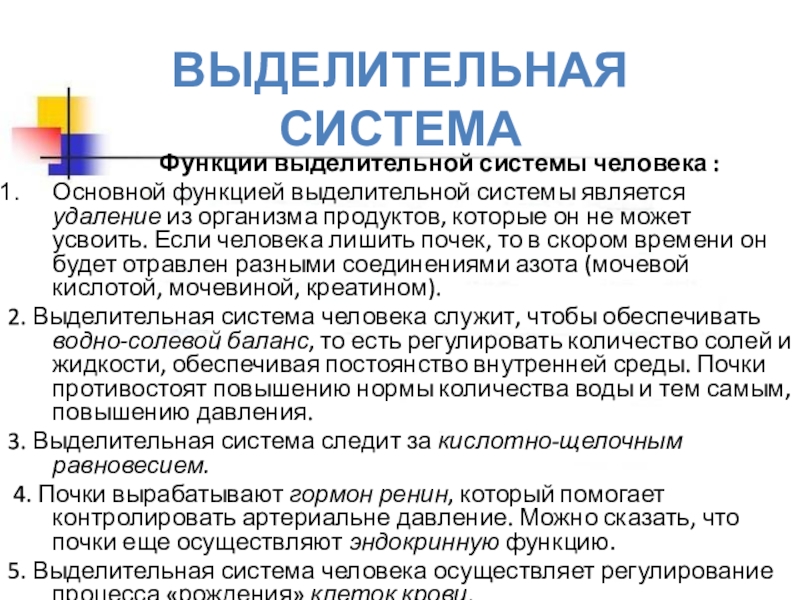 3. Выделительная система следит за кислотно-щелочным равновесием.